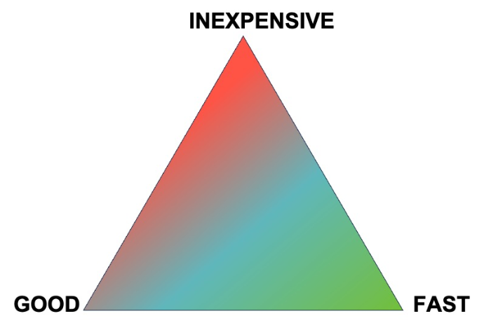 We all know the project triangle: good – inexpensive – fast. You can pick two, never all three. Yet IT departments are often pushed into the 'all of the above' illusion. Out of fear of being difficult, they give in to business pressure — client-pleasing instead of client-focused. True strength lies in daring to say: “STOP!”